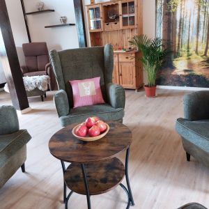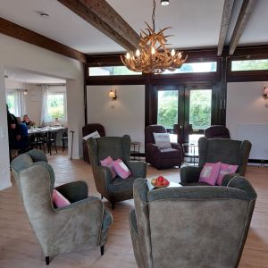 Im gemütlichen und stilvoll eingerichteten Wohnzimmer können sich die Bewohner treffen und austauschen. Diverse Sitzecken bieten im ganzen Haus die Möglichkeit, sich zurück zu ziehen ohne sich einsam zu fühlen.